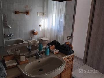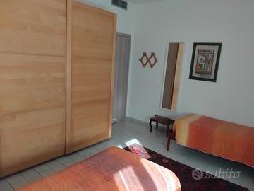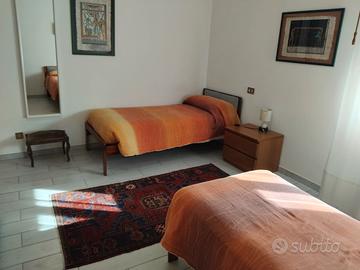 Camera doppia in condivisione con bagno interno riservato completamente arredata su casa singola climatizzata primo piano cucina completamente attrezzata lavastoviglie lavatrice forno completa accessori 4 km centro 5 minuti tram e market farmacia poste prezzo a persona comprensivo di tutte le spese acqua luce gas rifiuti