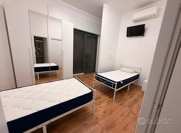 Affittasi posto letto in camera doppia per donna . Zona questura . Piano terra . La casa è mista ( 2 uomini e 2 donne ) due bagni , quindi ognuno ha il suo bagno , ciò a in condivisione . Canone 350€ spese a parte ( si arriva a 400€ con le spese ). Area condizionata, arredata, tv ect