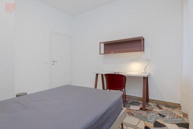 Stanza è dotata di un letto a una piazza e mezza 120 x 200 cm con rete a doghe, materasso ortopedico e coprimaterasso, comodino, armadio alto, Scrivania 135x60 cm, sedia design, lampada e contenitore pensile.