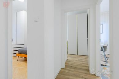 Dispone di cinque camere da letto, permettendo di ospitare comodamente più studenti, ognuno con il proprio spazio personale. Con due bagni moderni e funzionali, le esigenze quotidiane sono gestite con facilità, evitando code mattutine e garantendo privacy e comfort.