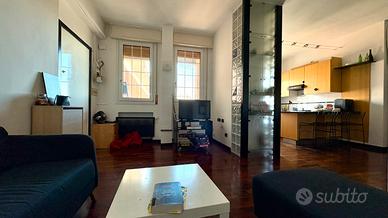 ? L'appartamento si compone di salotto, cucina con penisola (lavastoviglie, forno ecc) tutto open space e molto ampio, 2 camere da letto: una singola e una doppia (occupata da due studentesse) e bagno con due lavandini doccia, vasca e lavatrice. Due balconi con stendino, sedie e tavolino.