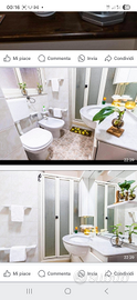 Bagno con doccia. La camera ha un valore di 390 euro al mese più spese. Ogni camera dell'appartamento è particolarmente arredata a tema, perché erano destinate a turisti,quindi non sono le tipiche camere da studente malconce e arredate con mobili vecchi. La camera più grande ha i tetti alti 5 metri. Contratto regolare