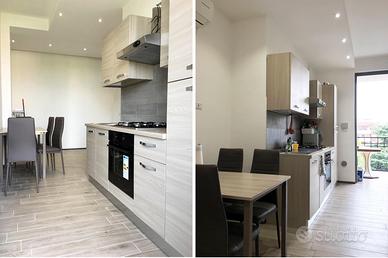 L'appartamento è composto da tre stanze adibite a camere da letto uso singolo + bagno e cucina attrezzata con terrazzino in condivisione.