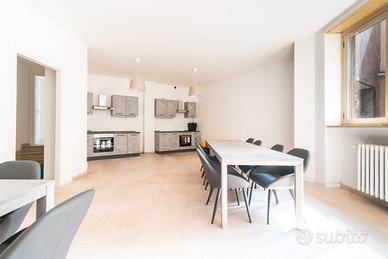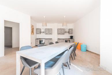 La Casa è molto ampia 350 mq ed è dotata di una grande cucina, con lavastoviglie e forno pronti all'utilizzo. Grande sala in condivisione in cui è possibile rilassarsi e relazionarsi con gli altri inquilini. L'appartamento è provvisto anche di un grande locale lavanderia con due lavatrici a disposizione di ogni persona interna alla casa. Oltre a questo l'appartamento dispone di tutti i comfort necessari, quali Wi Fi illimitato, arredo di pregio e tutti gli strumenti necessari per l'abitabilità (stoviglie e strumenti per la pulizia, aspirapolvere, scope ecc.. . ). L'appartamento è composto da 12 stanze, tutte ad uso singolo e con lucchetto, 4 bagni e 2 cucine. Gli inquilini sono studenti/lavoratori tra i 20 e i 30 anni, appartamento misto, sia donne che uomini.