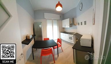 Camera con bagno ad uso esclusivo, tornata disponibile a 700m. dalla sede universitaria di viale Italia, in appartamento completamente ristrutturato e riammobiliato, panoramico, rifinito (porta blindata, parquet, infissi con vetrocamera). Le camere hanno serratura di sicurezza. Servizi comuni: soggiorno con TV, WiFi, cucina completa di elettrodomestici (forno, frigorifero, microonde, lavastoviglie), area lavanderia completa di lavatrice. Riscaldamento autonomo. In prossimità delle fermate dei mezzi pubblici per Zona Ospedaliera e vicinissimo a supermercato, ufficio postale e farmacia. Canone: 270 euro più spese da conguagliare. Usare QR code per visionare sito con dettagli.