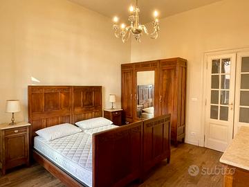 La STANZA è ampia, con soffitti alti, pavimento in legno, un armadio a tre ante, un balcone con sedie e un tavolino. Materasso e cuscini ortopedici nuovi.