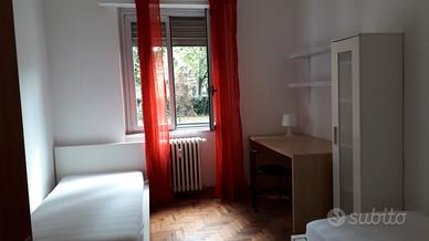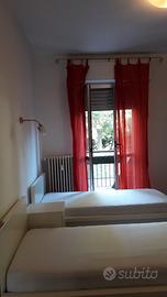 Affitto a studenti/sse o giovani lavoratori/lavoratrici stanza doppia in bell'appartamentodi 80mq. ristrutturato di recente e ben arredato, composto da 2 camere,bagno, cucina in muratura a vista e salone e due balconi.Giardino condominiale e custode.