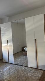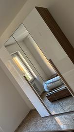 La stanza è una matrimoniale con armadio sei ante 40per50 mq, con scrivania e finestra con balcone fronte strada. L'appartamento ha 4 stanze in totale, 3 occupate, una cucina abitabile un ampio salotto e due bagni.