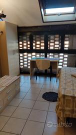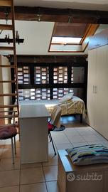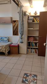 A single bedroom with a large desk, a built-in wardrobe with a chest of drawers, a lighted window onto a large private garden. Wi-fi and expenses included in the monthly fee. Near Policlinico di San Donato and yellow subway to Milan.