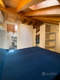 stanza matrimoniale mansardata uso singola, climatizzata, con bagno privato e studio.