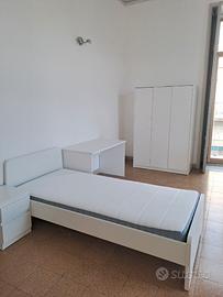 Stanza ampia, arredata, climatizzata, con 2 balconi, in un appartamento di 4 stanze, con cucina abitabile con balcone, 2 bagni, un ammezzato, un piccolo terrazzo, in un palazzo al terzo piano con ascensore, in via Gorizia (vicino la facoltà di Economia, la fermata della Metro Galatea). 260 euro mensili. Tel. 3405951965