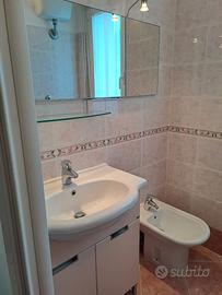 L'appartamento, ampio e luminoso, con impianti a norma, è composto da tre camere, tutte con vista mare, cucina abitabile con balcone affacciato sul verde, due bagni completi di tutti i sanitari.
