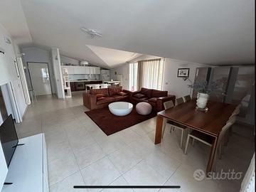 Una grande area a giorno, con cucina a vista moderna ed accessoriata (lavastoviglie, piano cottura a 5 fuochi, cappa d'aspirazione, ed un grande terrazzo esterno.