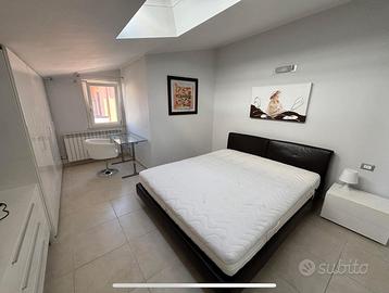 Letto matrimoniale King size ( 180 x 200), ampia scrivania, armadio e cassettiera, climatizzatore freddo/caldo dentro la stanza.