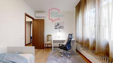 Camera singola completa con aria condizionata caldo/freddo in ogni stanza, cucina abitabile, 2 bagni, terrazzo e posteggio bici interno.