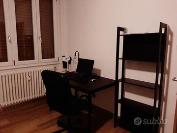La stanza possiede un letto da una piazza e mezza , armadio a 2 ante, comodino, scrivania e libreria.