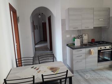 Composto da ingresso, tre camere singole, cucina attrezzata (frigo, forno, microonde), zona pranzo, due bagni alla francese e locale doccia separato.
