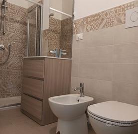 Appartamento condiviso con altri giovani composto da cucina, cinque camere singole e due bagni.