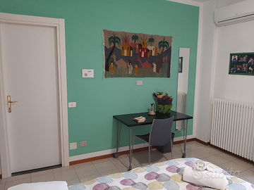Affitto solo a persone referenziate camera matrimoniale arredata con bagno privato,rete wifi, televisore e ampio terrazzo. A disposizione grande cucina con tavolo e dispensa indipendenti. Inoltre a servizio degli ospiti lavatrice con stendini personali.Il prezzo è comprensivo di tutte le utenze e spese condominiali.