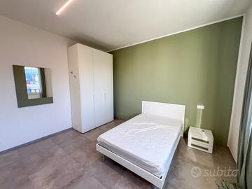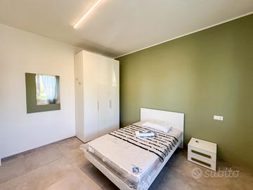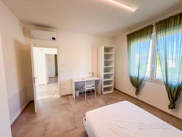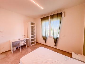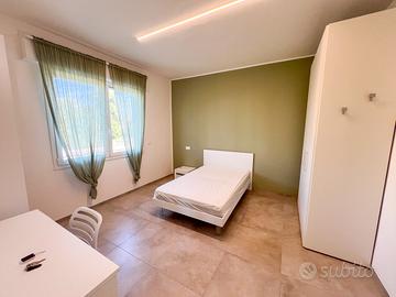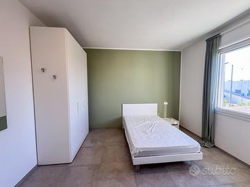 Disponibili stanze singole in camera matrimoniale arredate con letti a una piazza e mezza, scrivania, armadio e specchio, climatizzatore in ogni stanza.