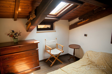 Immobile situato al centro di Bracciano di fronte alla stazione. Si affittano tre stanze di varia metratura e quindi di diversi prezzi a partire da € 200, ad uso foresteria a lavoratori/trici per medici o professori universitari. La stanza principale è composta da un letto a una piazza e mezza, armadio, scrivania e bagno in camera. La seconda è come la prima senza però il bagno in camera. L'appartamento è dotato di doppi servizi. La terza stanza è più piccola delle prime, ma contiene letto ad una piazza, armadio e scrivania. Il bagno è da condividere. Nell'immobile si trova anche una cucina abitabile con piano cottura, TV e un soggiorno adiacente con libreria. Le uniche bollette sono date dall'acqua, i rifiuti e l'elettricità. Il riscaldamento è autonomo ed è composto da condizionatore caldo/freddo e dal camino.