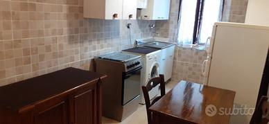 Entrata con corridoio, 2 stanze singole ben tenute, cucina e bagno rifatti da poco, ripostiglio e possibilità di garage per biciclette.
