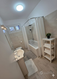 L'appartamento offre 2 bagni spaziosi e una cucina abitabile completamente attrezzata con doppio frigorifero, piano cottura ad induzione 5 fuochi, forno, microonde, lavatrice, asciugatrice, bollitore e stoviglie nuove.