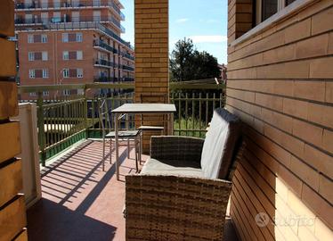 L'appartamento, ristrutturato nel 2024, è composto da due ampie camere, un luminoso soggiorno e un grande terrazzo ideale per momenti di relax o studio.