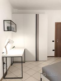 Camera spaziosa e molto luminosa per chi mette la comodità al primo posto tra le sue esigenze. Come ogni stanza di questo appartamento anche questa camera è studiata per rendere la tua esperienza universitaria il più gradevole possibile. Abbiamo utilizzato colori tenui per favorire la concentrazione. L'arredamento - funzionale e di design - è caratterizzato da: un'illuminazione scelta appositamente per creare un'atmosfera riposante, una sedia che ti eviti il mal di schiena nonostante le diverse ore di studio che dovrai affrontare, un materasso ortopedico per garantirti un adeguato riposo un armadio a 2 ante battenti con cassettiera per tutto il tuo guardaroba. SINTESI OFFERTA Stanza singola - Disponibile CANONE 400€/mese SPESE 135€/mese - anticipo salvo conguaglio che include condominiali, Gas, Elettricità, Acqua, Rifiuti, Internet, Fondo tinteggiatura, SOS tuttofare Codice: TN_PLR21-15_S1