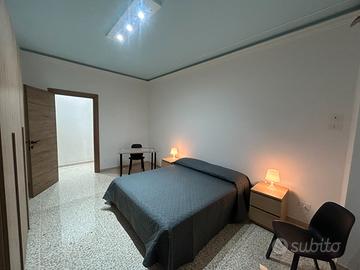 Arredato con gusto moderno e dotato di finiture di pregio, l'appartamento è composto da 4 spaziose stanze balconate con letti matrimoniali completi di doghe in legno massello e materassi ortopedici nuovi, ancora sigillati sottovuoto, corredati di topper e munite di capienti armadi e scrivanie. Due delle quattro stanze possono essere riconfigurate, su richiesta, eliminando il letto matrimoniale e trasformandole in camere doppie.