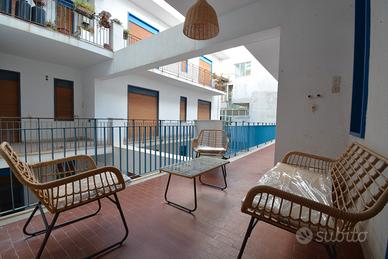 Composto da sei camere, una cucina abitabile e bagni moderni dotati di box doccia, il tutto è stato arredato con cura e attenzione ai dettagli. Ogni camera è provvista di un balcone ammobiliato con tavolini, sedie e piante, offrendo un angolo di relax all'aria aperta.