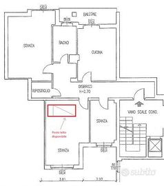 A 100 metri dal Duomo e vicino alle principali Facoltà proponiamo per una ragazza posto letto in doppia, in spazioso appartamento di 105 mq, arredato e composto di: ingresso, zona giorno con balcone vista Duomo, corridoio notte, 3 stanze da letto (2 doppie - in una di esse vi è il posto letto - e 1 singola), ripostiglio e bagno finestrato con lavatrice.