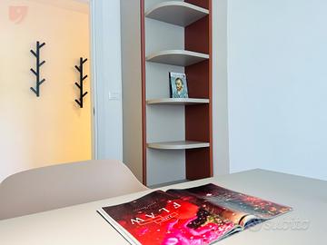 Questa stanza è stata progettata per massimizzare ogni centimetro disponibile, rendendola estremamente funzionale e accogliente.