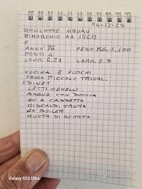 AA156 CARAVAN BENTROVATI IL PRESENTE ANNUNCIO ENPER OFFRIRVI QUESTA CARAVAN DELL ANNO 1996 MODELLO GRUAU 4 POSTI PESÒ 1100 KG LUNGHEZZA 6210 LARGHEZZA 2300 DOTATA DI CUCINA DUE FUOCHI FRIGO PICCOLO TRIVALENTE UNA DINETTE LETTI GEMELLI BAGNO CON DOCCIA WC A CASSETTA RISCALDAMENTO TRUMA