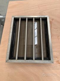 2 finestre fisse usate con telaio in alluminio , vetro temperato fume . Griglie di protezione interne in acciaio inox . Foro scocca 57cm x 45cm .