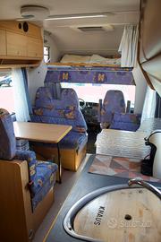 Vendo per cambio tipologia camper mandardato Knaus Sun Traveller 7.40mt su motore Fiat Ducato 2.8 con meno di 120.000km appena revisionato e tagliandato, cinghia di distruzione rifatta 2 anni fa e da allora ha fatto pochissimi km. Controllo infiltrazioni fatto da poco tutto ok. 7 posti letto (omologati per viaggiare 5):