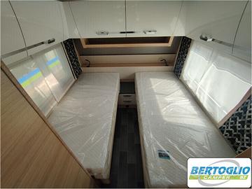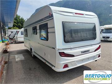 536 TABBERT Vivaldi 550 E - 10 ANNI DI GARANZIA CONTRO LE INFILTRAZIONI - telaio al-ko con stabilizzatore e cerchi in lega da 15"- 4 posti letto ( dinette ferro di cavallo in coda e letto gemelli anteriori) - massa complessiva 1800 Kg - dimensioni. lung. 790, larg 250, alt 265 - riscaldamento truma con aria canalizzata - Allarme fughe gas - serbatoio fisso da 45 litri con truma therme ed acqua calda a tutti i rubinetti - ampia porta entrata con vetro a scuderia, con pattumiera e zanzariera - illuminazione led ACCESSORI: Maggiorazione telaio a 1800kg