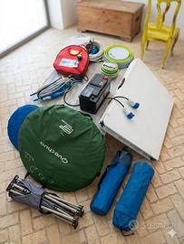 Vendo per inutilizzo kit completo di attrezzatura e accessori per camper, ideale per chi inizia o vuole rinnovare la propria dotazione. Tutto il materiale è stato tenuto con cura e molti componenti sono pari al nuovo. IL KIT COMPRENDE: • BATTERIA SERVIZI NUOVA: Mai usata, valore principale del pacchetto. • SET ELETTRICO: Cavo 20m + Cavo 5m + adattatori e spine CEE (blu) per colonnine. • ESTERNO: Tavolo richiudibile da 1,80m + 2 sedie da spiaggia. • CAMPING: Tenda Quechua 2 posti + tende doccia esterna + accessori richiudibili in silicone. • SICUREZZA: Catene da neve per camper. ⚠️ REGOLE PER LA VENDITA (LEGGERE BENE): 1.SOLO IN BLOCCO: Non vendo i pezzi singolarmente. Non scrivetemi per chiedere solo la batteria o solo il tavolo. La risposta sarà no. 2.NO PERDITEMPO: Il prezzo è già corretto per il valore del materiale (molto del quale è nuovo). Se cercate l'affare impossibile o volete mercanteggiare all'infinito, passate oltre. 3.PRENDERE O LASCIARE: O si prende tutto il blocco o niente. Non mi interessano scambi o proposte assurde. 4.RITIRO: Solo consegna a mano a Vista la mole degli oggetti, non spedisco.