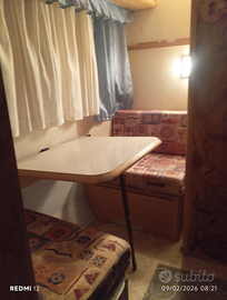Caravan revisionata ,gomme cambiate 1 anno fa, timone revisionato, zanzariere, scuranti, cuscini rifatti, frigo a compressore a basso voltaggio, batteria varta , 80 ampere, luci originali più a led. , caricabatterie intelligente, un tavolo da 4 persone che diventa matrimoniale, un tavolino da due persone che diventa un letto e un armadio a scomparsa che diventa un 4 letto , due fuochi, cassetta wc estraibile maggiorata , gavone esterno capiente che contiene due bombole insieme da 10 kg, nessuna infiltrazione, due proprietari ma il primola avuta per 19 anni, peso 840 kg, veranda su misura conver, valuti scambio eventualmente con sporter 883 o con tenda maggiolina ,,pannello solare e ruota di scorta .,doppi vetri con camera interna per un miglior isolamento., porta d'entrata sdoppiabiabile.