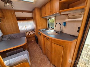 Adria Adiva 542 PK del 2004, ideale per famiglie, con massa complessiva di 11 quintali. La roulotte è sempre stata mantenuta con estrema cura, regolarmente rimessata al coperto e si presenta in condizioni eccellenti sia estetiche che meccaniche. MECCANICA E SICUREZZA: La roulotte è pronta per viaggiare senza necessità di alcun intervento. Revisione ministeriale appena effettuata. Telaio in perfetto stato, totalmente privo di ruggine o segni di ossidazione. Pneumatici nuovi e cerchi in lega. Impianto frenante completamente revisionato. Gancio Alko con stabilizzatore antisbandamento appena revisionato per la massima sicurezza in fase di traino. DISPOSIZIONE INTERNA (6 POSTI LETTO): Letto matrimoniale anteriore con porta rigida per la privacy e accesso diretto al gavone interno (i materassi sono attualmente in fase di consegna, fatti nuovi su misura e verranno forniti con il mezzo). Letti a castello fissi in coda. Dinette centrale trasformabile in un ulteriore letto matrimoniale. Tappezzeria in perfetto stato, appena lavata e igienizzata professionalmente. IMPIANTISTICA E DOTAZIONI: Tutti gli impianti sono stati recentemente controllati e aggiornati: Impianto gas revisionato: installati ugelli nuovi per i fornelli, riduttore e tubo gas appena sostituiti. Riscaldamento: stufa Truma canalizzata e revisionata. Impianto idrico: boiler per acqua calda, rubinetteria nuova appena installata e serbatoio con modifica a pompa esterna (tipo camper) nuova. Nessun lavoro da eseguire. Valuto permute con auto, moto o camper, anche di valore superiore con conguaglio a mio carico.