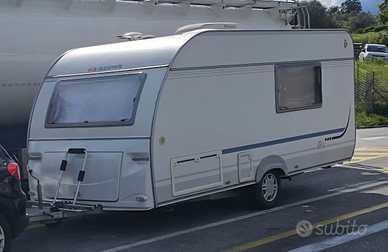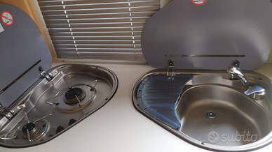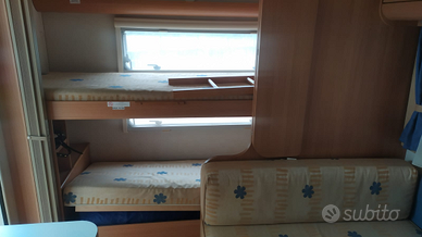 Roulotte tenuta in maniera maniacale,6 posti letto ,di cui in coda a castello dinet trasformabile in letto alla francese, e in testa matrimoniale fisso. Cavone ispezionabile dall'interno. Stabilizzatore alko, porta bici,aria condizionata revisionata e ricaricata un anno fa della dometic, stufa Truma, tutte le finestre con zanzariere e oscuranti, chiusura della porta aggiuntiva della Fiamma.