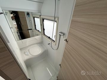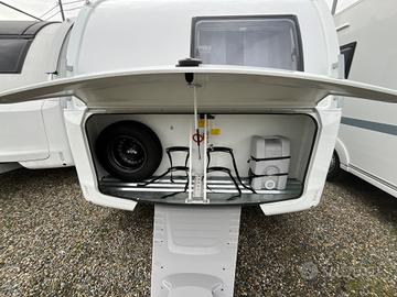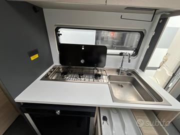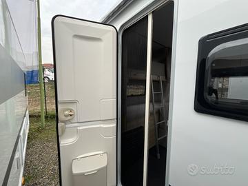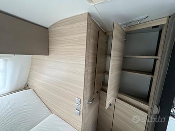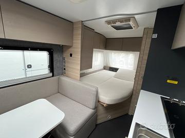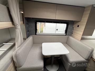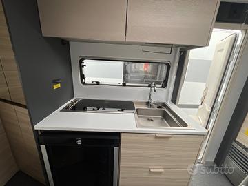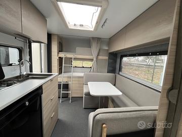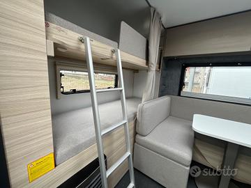 Caravan compatta e moderna, per famiglie fino a 6 persone che cercano un equilibrio tra comfort e maneggevolezza nel campeggio itinerante.