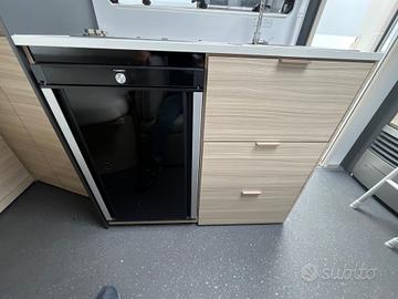 Cucina: Blocco cucina a 3 fuochi con lavello in acciaio e frigorifero grande trivalente (spesso da 90 litri o superiore a seconda del pacchetto).