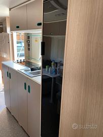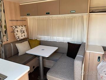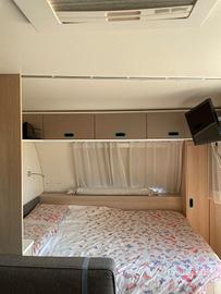 Splendida roulotte ADRIA AVIVA 563 PT anno 2017 con letto matrimoniale, letti a castelli e dinette trasformabile in letto matrimoniale completo di tendalino nuovo, aria condizionata nuova, doppio serbatoio acque chiare, batteria dei servizi, gomme sostituite nel 2024, antenna digitale terrestre
