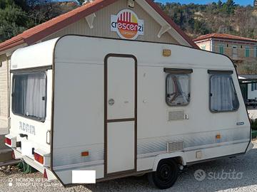 Dinette anteriore trasformabile in letto matrimoniale, letto singoloposteriore con eventuale quarto lettino nel mobile superiore.