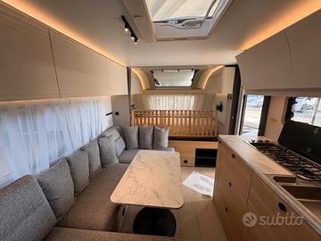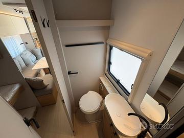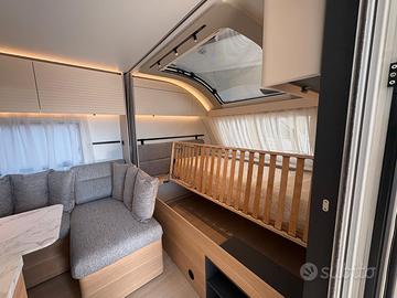 Meravigliosa Caravan Adria Adora 573 PT, omologata 7 posti letto di cui 5 letti sempre pronti. Con letto a castello da 3 posti e letto matrimoniale, bagno super luminoso con un'ampia finestra. Comodo divano molto spazioso e tavolo nella zona dinette. Ampio spazio di stivaggio con comodi armadi.