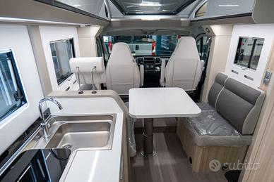 Dotazioni extra: Fiat 2,2 140 HP 35L Aut (€3.900,00), Vetroresina grigia + grafiche 60Y (€1.000,00), Vernice metalizzata Fiat (€1.200,00), Riscaldamento Truma Combi E (€800,00), Porta Tv (€300,00), Copri lavello/Tagliere 60Y, Set cuscini decorativi 60Y Edition, Tessuti KYLIAN, Materassi Evopore (€250,00), Frigo 138 lt (€400,00), Pensili bianchi (€300,00).
