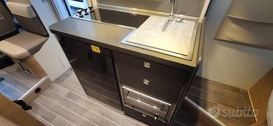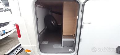 Antenna digitale, Condizionatore cabina, Cruise Control, Gavone posteriore, impianto stereo, Letto, luce esterna, pannello solare, Piedini manuali, Porta con zanzariera, Portamoto, Sospensioni ad aria., telecamera posteriore, Veranda, WC