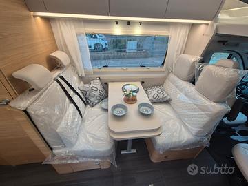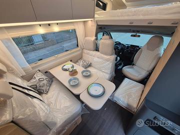 ARIA CONDIZIONATA AUTOMATICA IN CABINA Paraurti Anteriore Verniciato Diffusori aria cruscotto cromati Porta ingresso XL con chiusura centralizzata, finestra con zanzariera e pattumiera Cerchi in lega 16'' Cruscotto digitale Comandi radio al volante Volante e cambio rivestiti in pelle Oscuranti cabina plissettati (Remis) Cruise control Traction+ Fari fendinebbia anteriore Serbatoi gasolio maggiorato 90 lt Eco pack Regolatore gas truma con crash sensor Sistema isofix Oblo' panoramico Sky roof Zanzariera plissettata sulla porta d'ingresso Luce diurne a led Riscaldamento truma combi 6kw Gas Serbatoio acque grigie coibentato e riscaldato Scarico acque grigie elettrico Doppio pavimento tecnico Sensori di retromarcia Barre portatutto con Scaletta Radio 10'' con touch screen Retrocamera Ricarica telefono wireless Porta TV Freno di Stazionamento elettrico