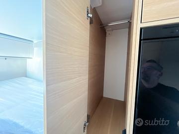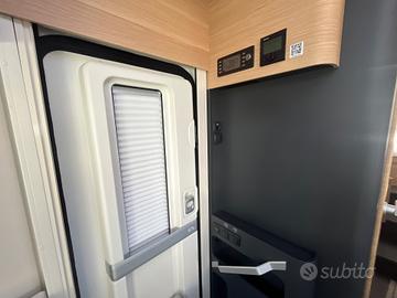 Il gradino di ingresso è elettrico con chiusura automatico alla messa in moto del camper .